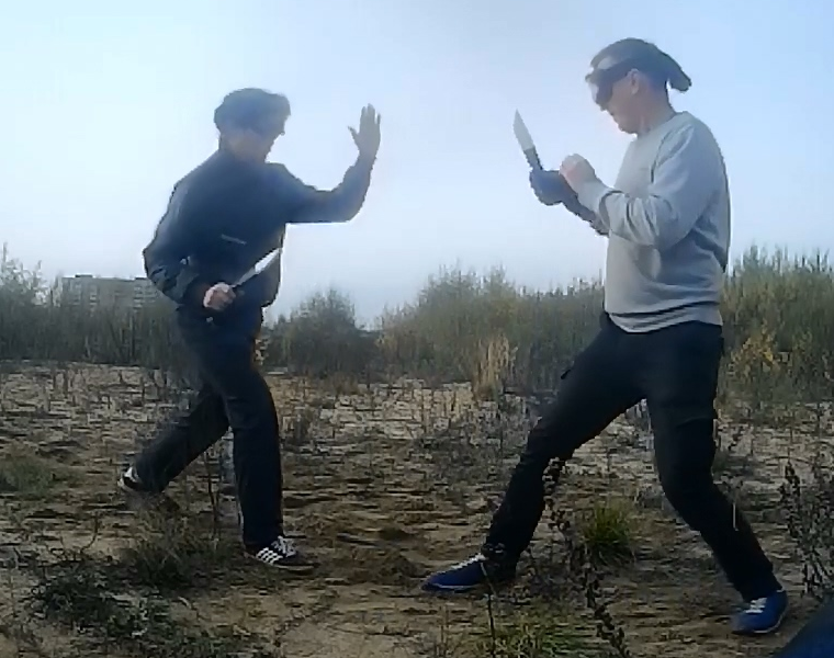 Увод, встречный удар, блок. Тренировочное упражнение.